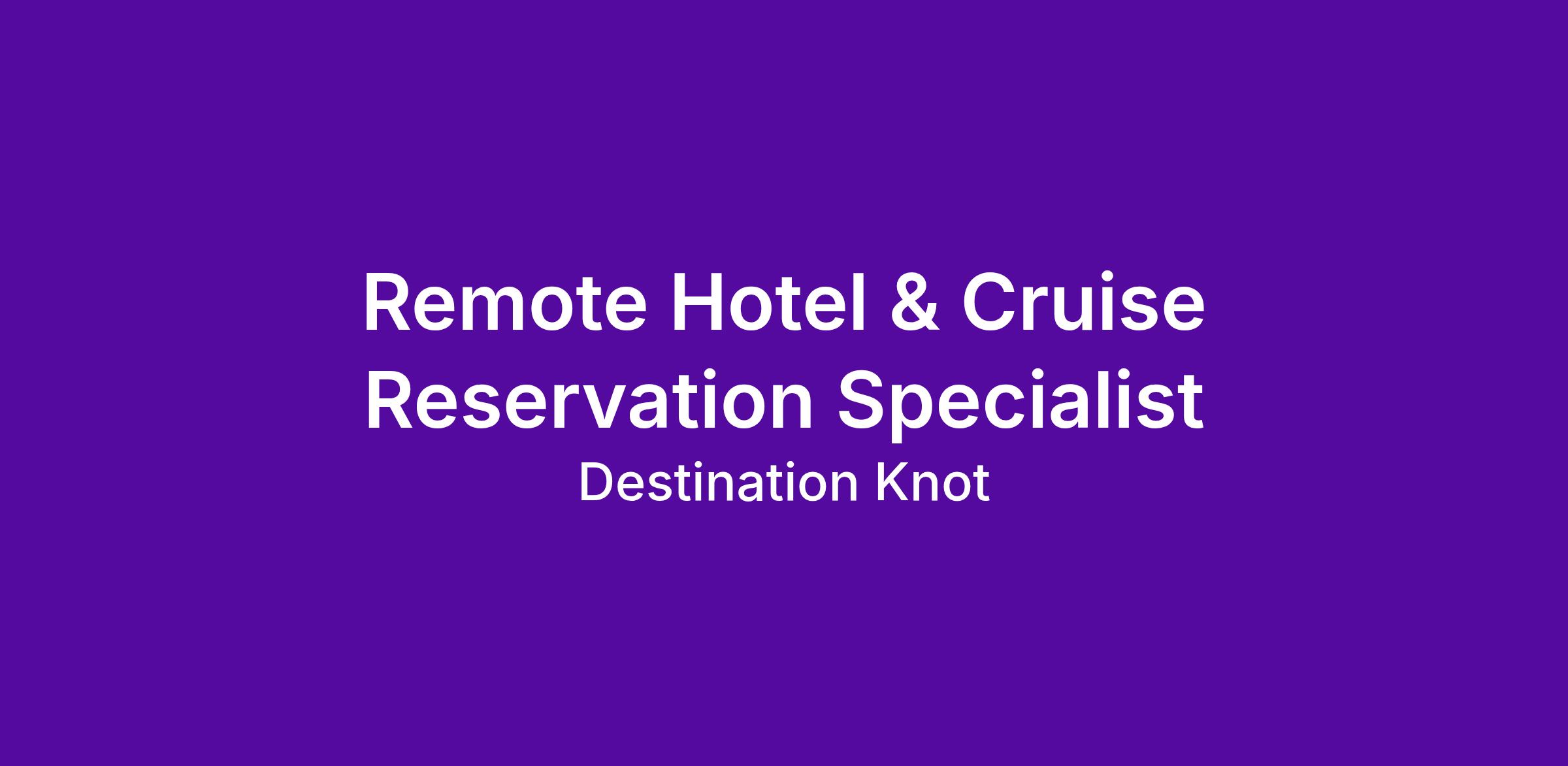 Remote Hotel & Cruise Reservation Specialist