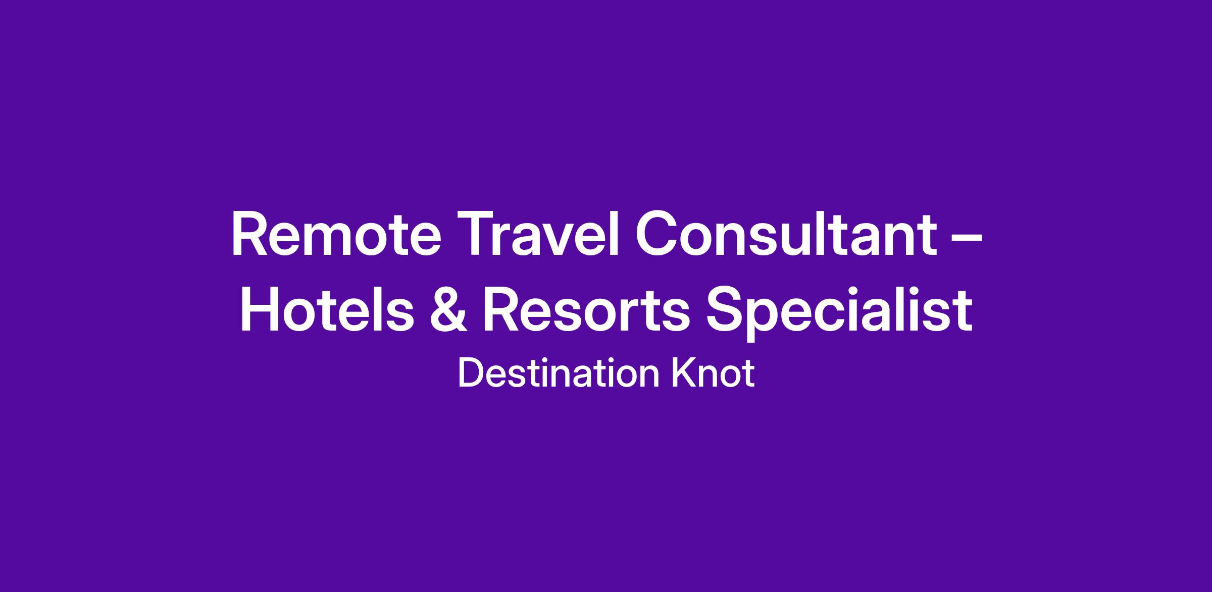 🌍 Remote Travel Consultant – Hotels & Resorts Specialist