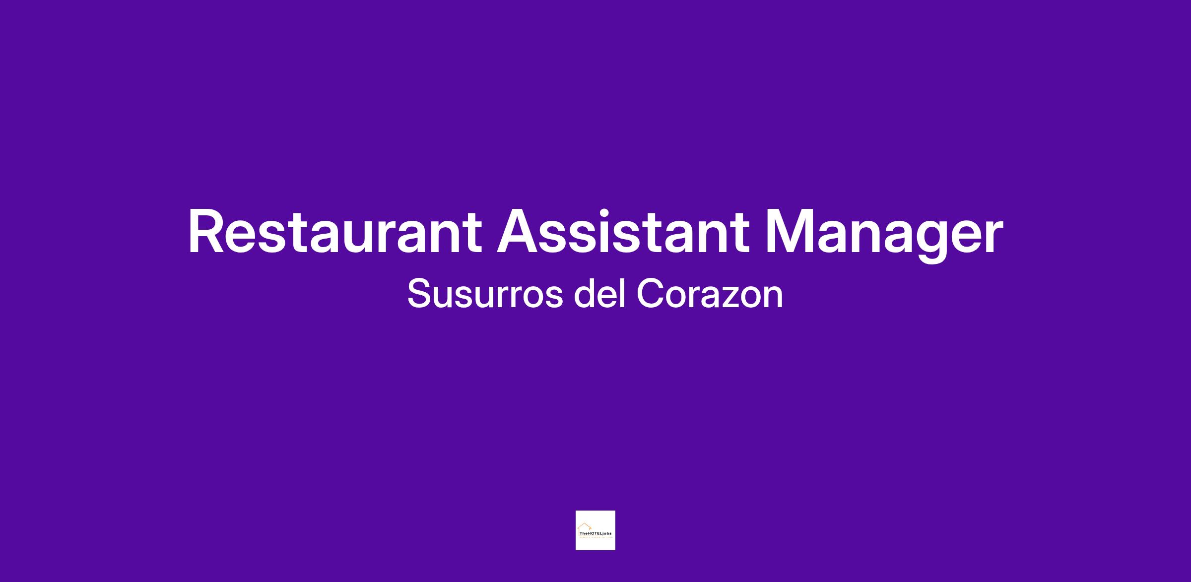 Join our team as Restaurant Assistant Manager at Susurros del Corazon in Punta de Mita Mexico, reporting to the Restaurant Manager/Director of Restaurants . You will be responsible for elevating the brand of Susurros de Corazon through the lens of culinary experiences around the outlet of the resort, driving the commercial and financial performance of The Outlets at Auberge, ensuring complete viability and maximizing all opportunities and resources. You will also ensure that the highest service standards are adhered to, and that guest experience exceeds expectations.