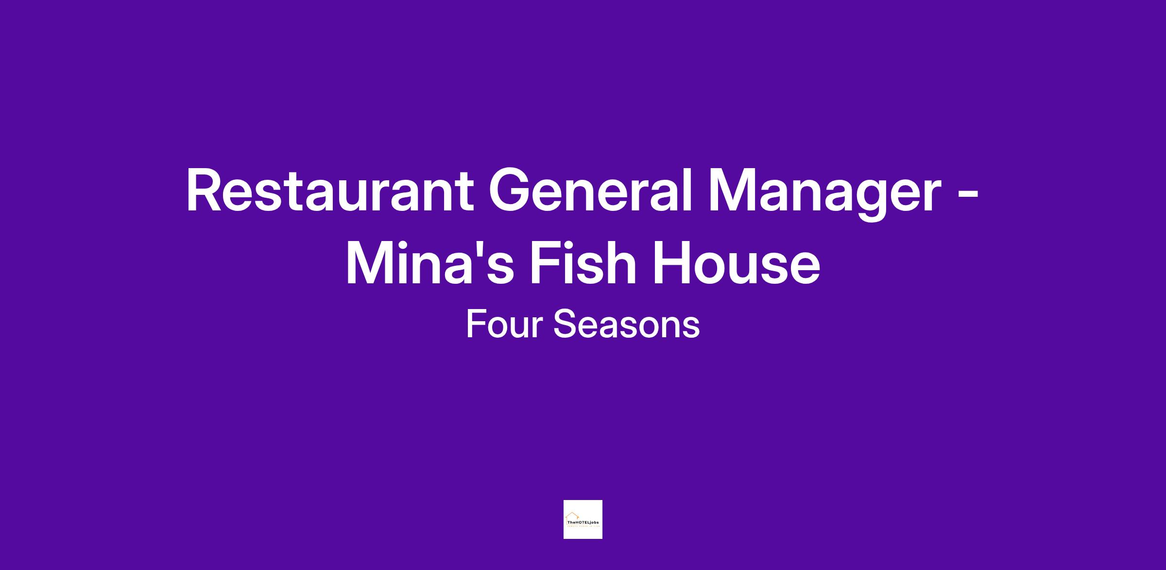 The Restaurant General Manager for Mina’s Fish House reports directly to the Assistant Director of Food and Beverage; and is responsible for managing the operations of Mina’s Fish House Restaurant.