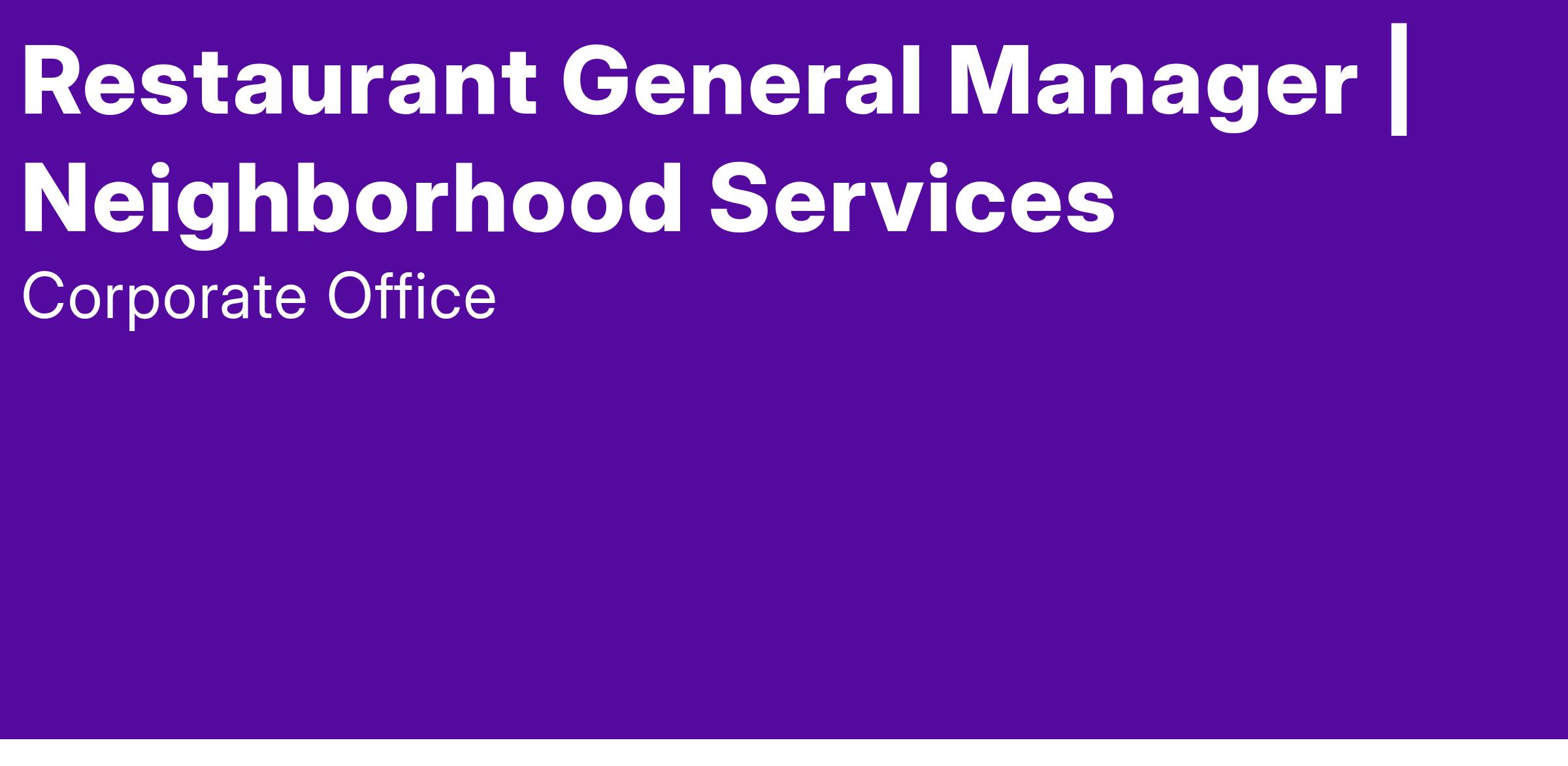 The purpose of the Restaurant General Manager is to ensure proper training and supervision of all personnel. To deliver prompt, courteous service in a manner that complies with Omni Food and Beverage standards and company policies and procedures.