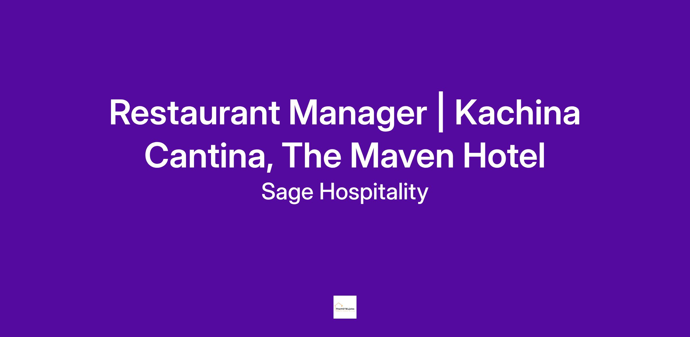 Restaurant Manager | Kachina Cantina, The Maven Hotel