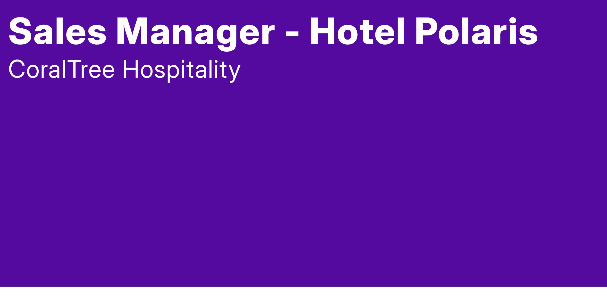 Are you ready to help shape the future of travel and hospitality at the new Hotel Polaris at the U.S. Air Force Academy? Hotel Polaris is seeking an exceptional Sales Manager to join our team and play a vital role in shaping the success of Hotel Polaris, an instant icon on the hospitality landscape of Colorado Springs. Your efforts significantly influence the unique and distinctive experiences we seek to deliver to our guests and team members alike. We're looking for someone who wants to be a part of something bigger and shares our passion for creating unforgettable guest experiences, nurturing a vibrant company culture, and building strong connections with our communities.