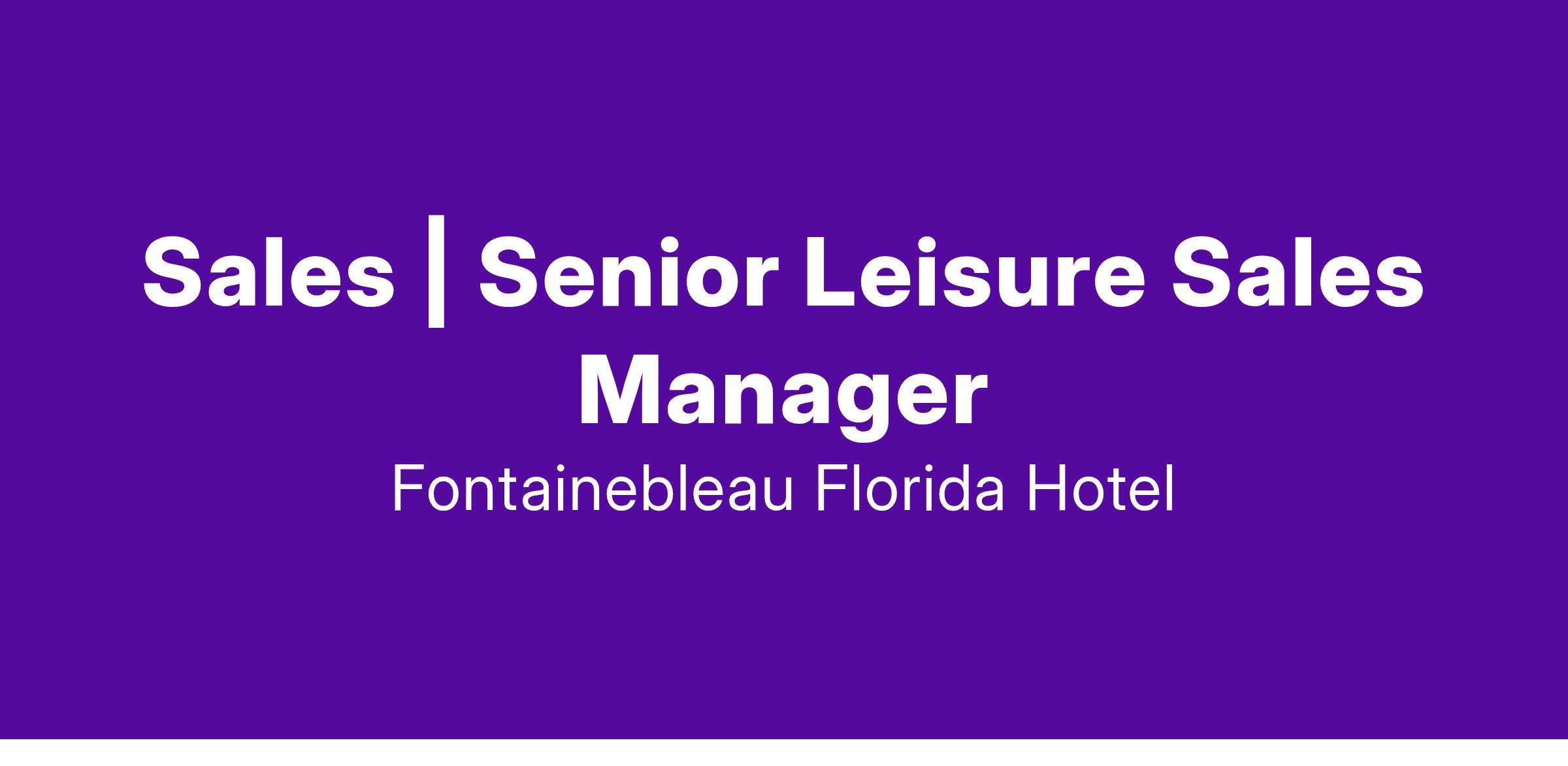 The Senior Leisure Sales Manager is responsible for the leisure sales efforts for the property, as an inside sales manager.