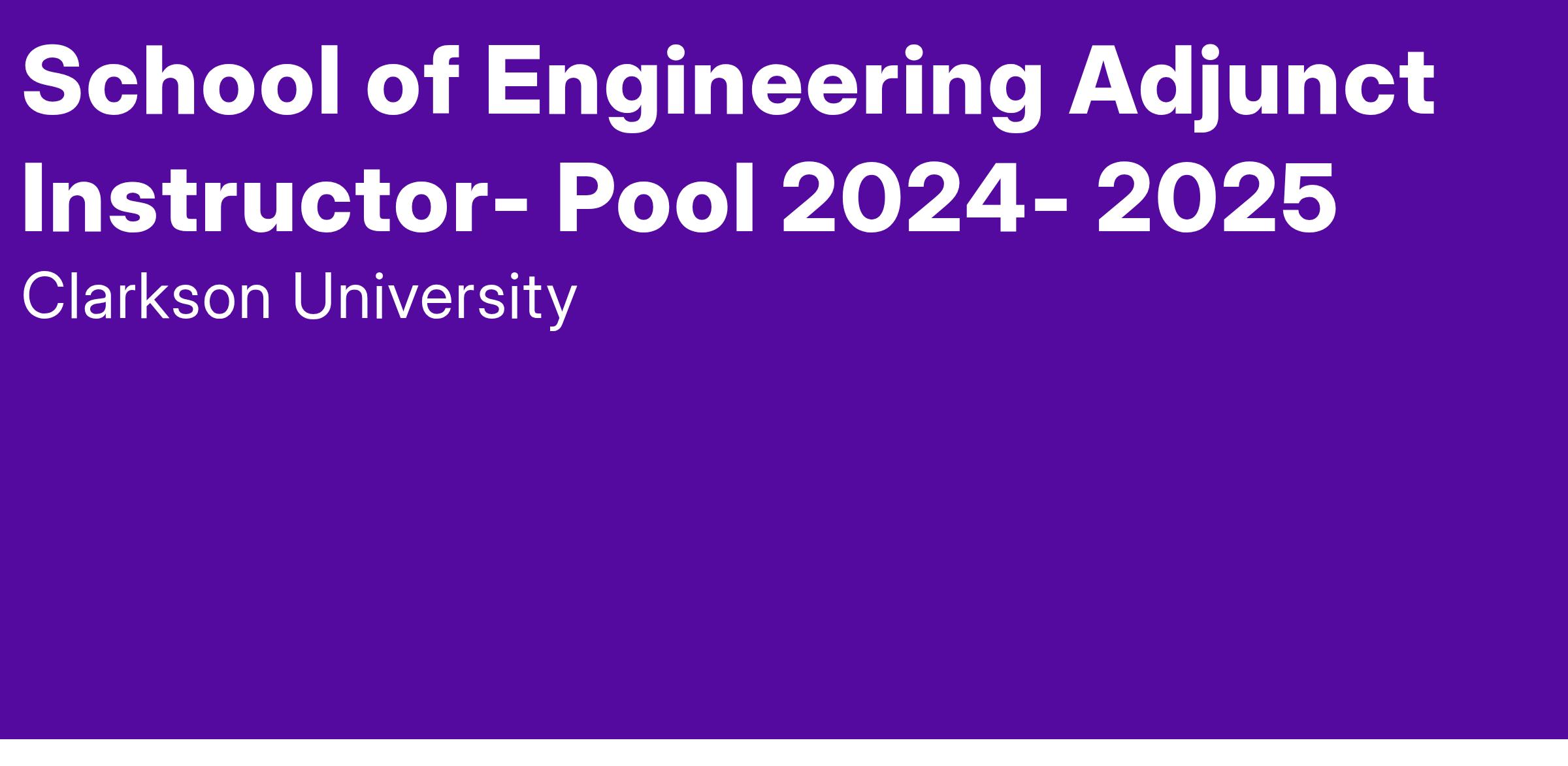 The Wallace H. Coulter School of Engineering at Clarkson University seeks adjunct instructors.