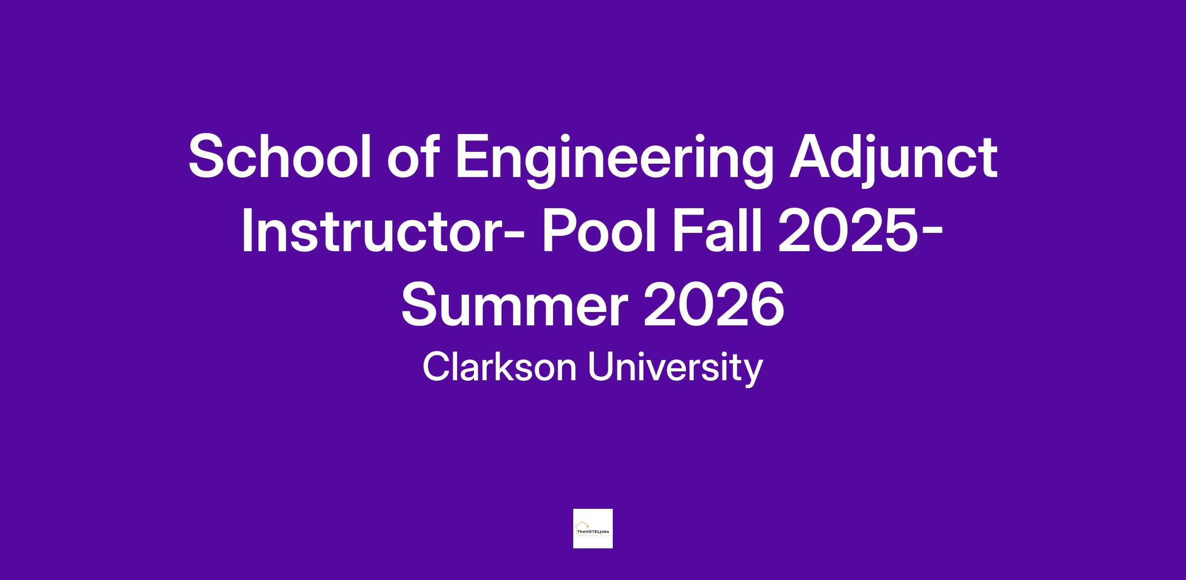 The Wallace H. Coulter School of Engineering at Clarkson University seeks adjunct instructors.