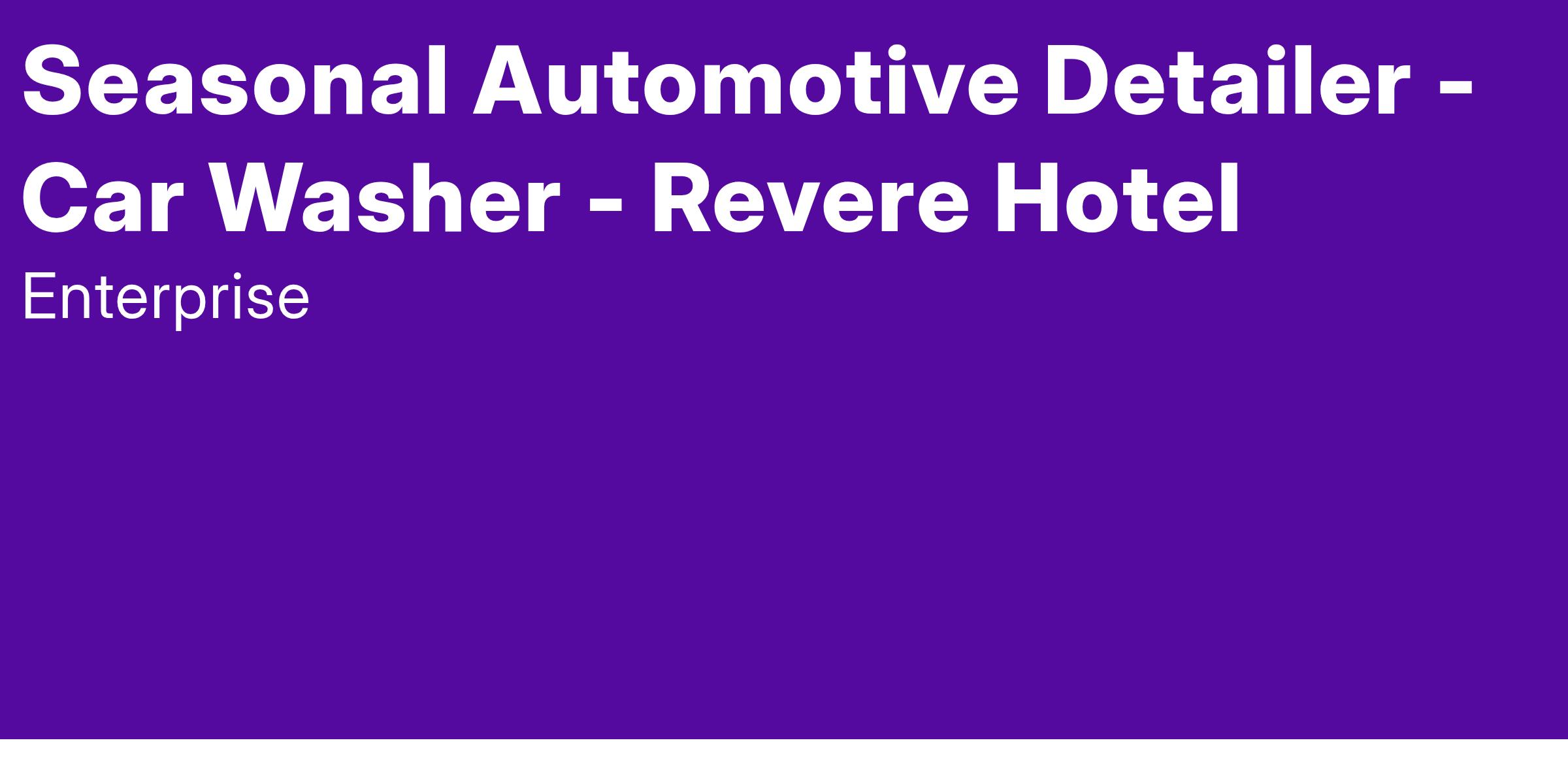 Enterprise Mobility is seeking responsible, dedicated people to join our team as Seasonal Automotive Detailers. This position pays $18 / hour and is located at 200 Stuart Street (5th & 6th Floor) Boston, MA 02116