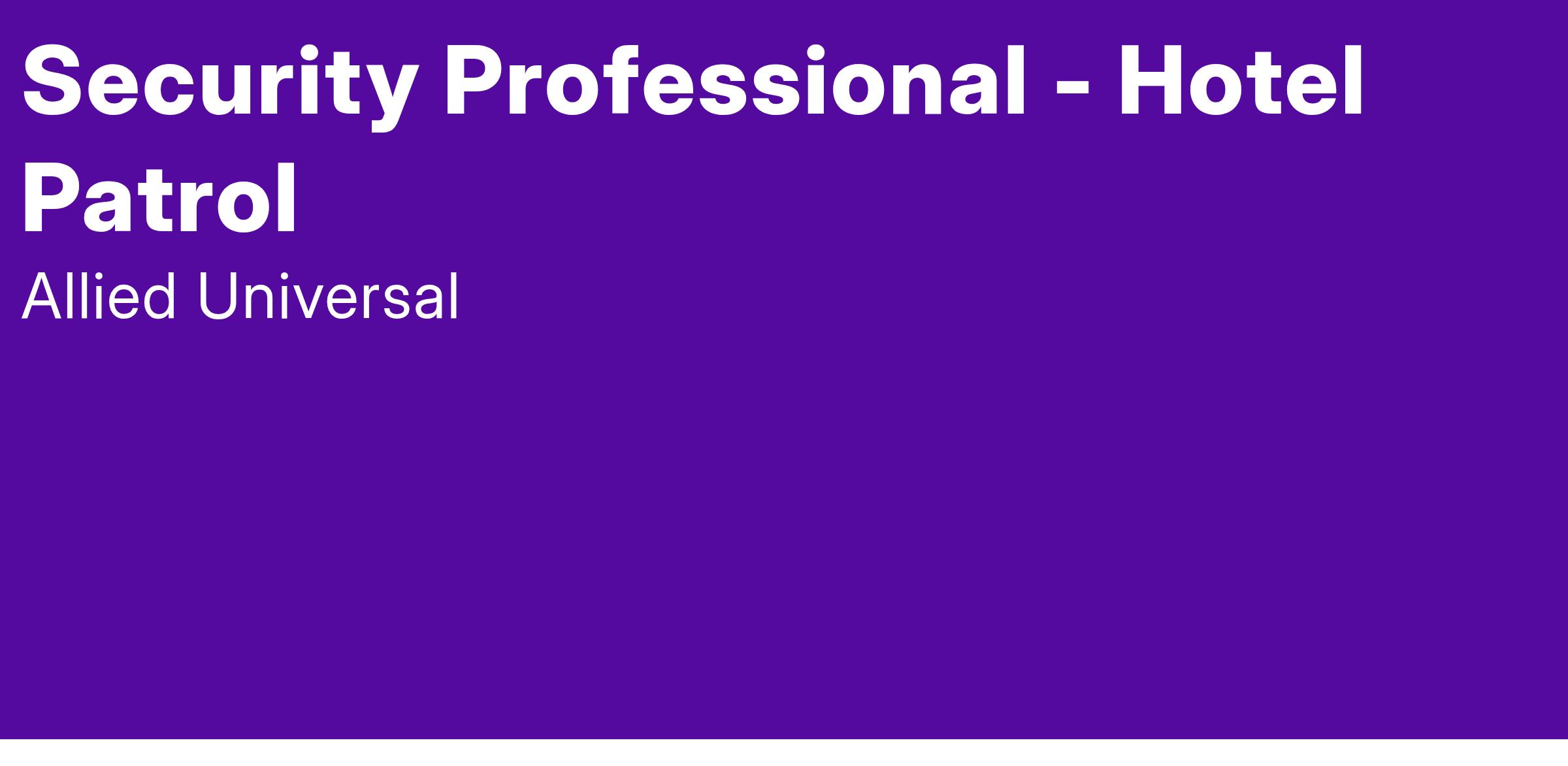 As a Security Professional - Hotel Patrol in Denver, CO, you will serve and safeguard clients in a range of industries such as Hotels & Resorts and more .