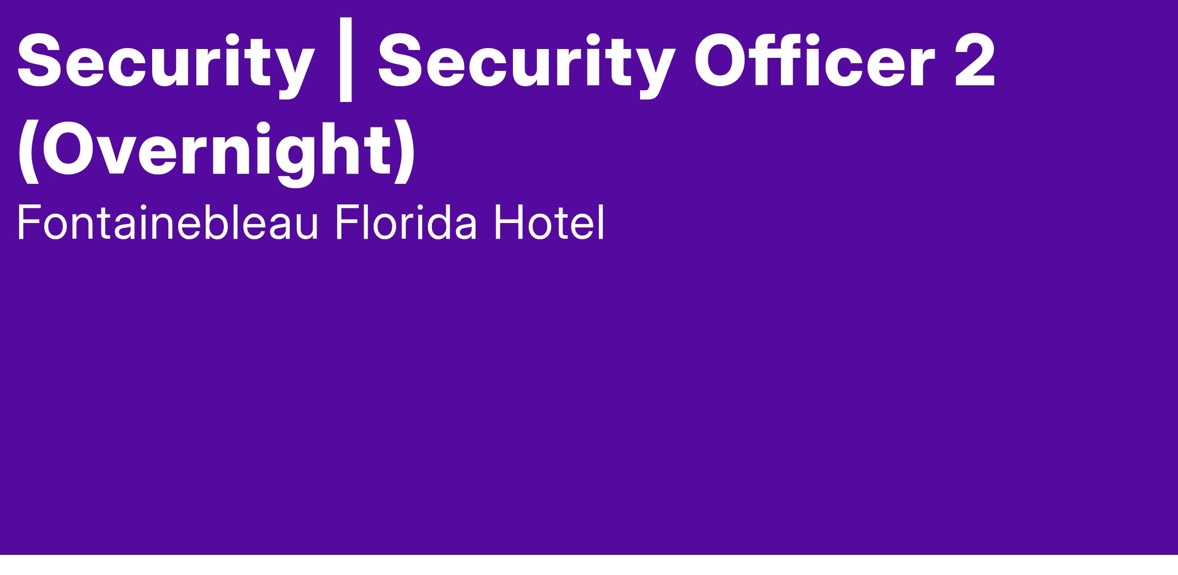 Responsible for performing protective and enforcement functions to maintain a safe and secure environment for hotel guests, visitors, and employees. Work is performed in all areas of the hotel.
