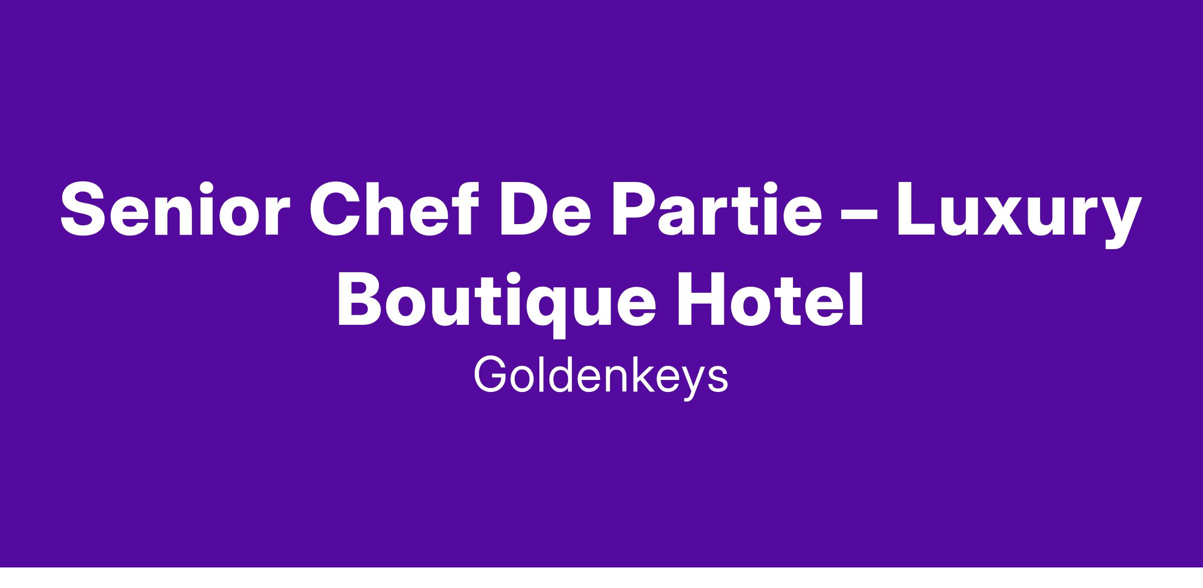 You’ll be wondering what’s in it for you as the Senior Chef De Partie…