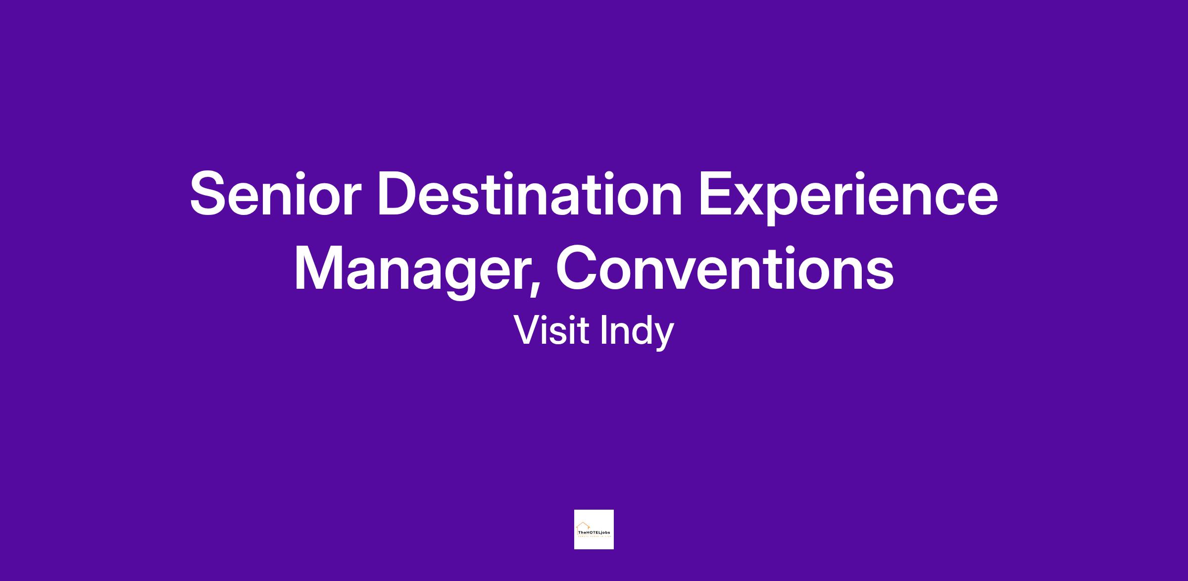 Senior Destination Experience Manager, Conventions. Every member of our team contributed to us being named one of the "Best Places to Work in Indiana" every year since 2016. You can be a part of our team too!