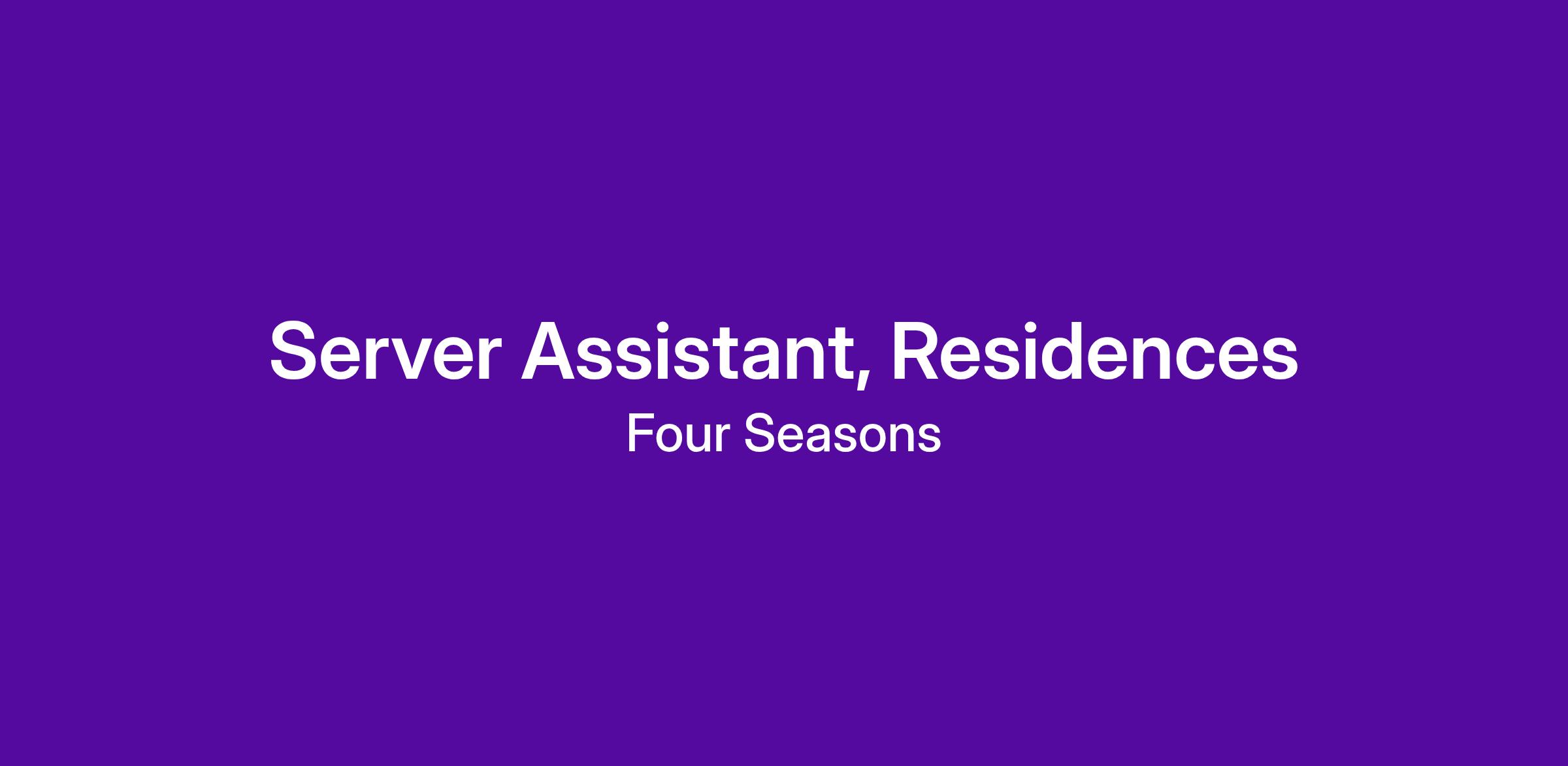 A rare gem on Florida’s Gulf Coast of Southwest Florida, Naples Beach Club, a Four Seasons Resort, is an exclusive collection of 156 luxurious beachfront private residences and a 222-room hotel all within a 125-acre walkable coastal village in the heart of Old Naples. Honoring local heritage and artfully reimagined for modern-day elegance, the resort includes residents-only facilities and amenities, a luxury spa and state-of-the-art well-being/fitness center, exquisite and diverse fine dining outlets, outdoor pursuits to include a tennis center, and an 18-hole golf course, bowling and movie theater experiences, and an exclusive private club. The first of its kind, the Naples Beach Club, a Four Seasons Resort, is paradise found.Server Assistant