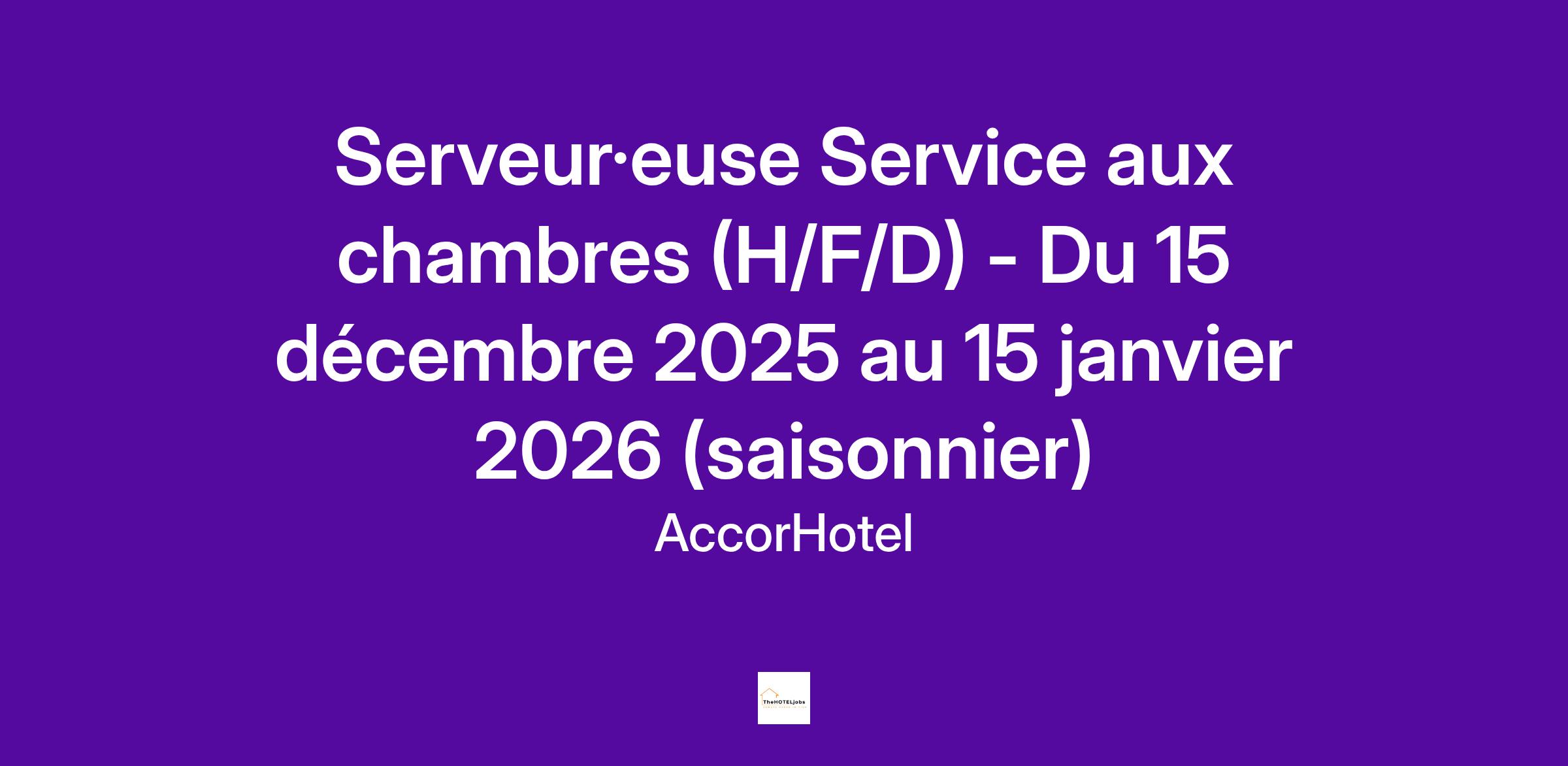 Serveur·euse Service aux chambres (H/F/D) - Du 15 décembre 2025 au 15 janvier 2026 (saisonnier)