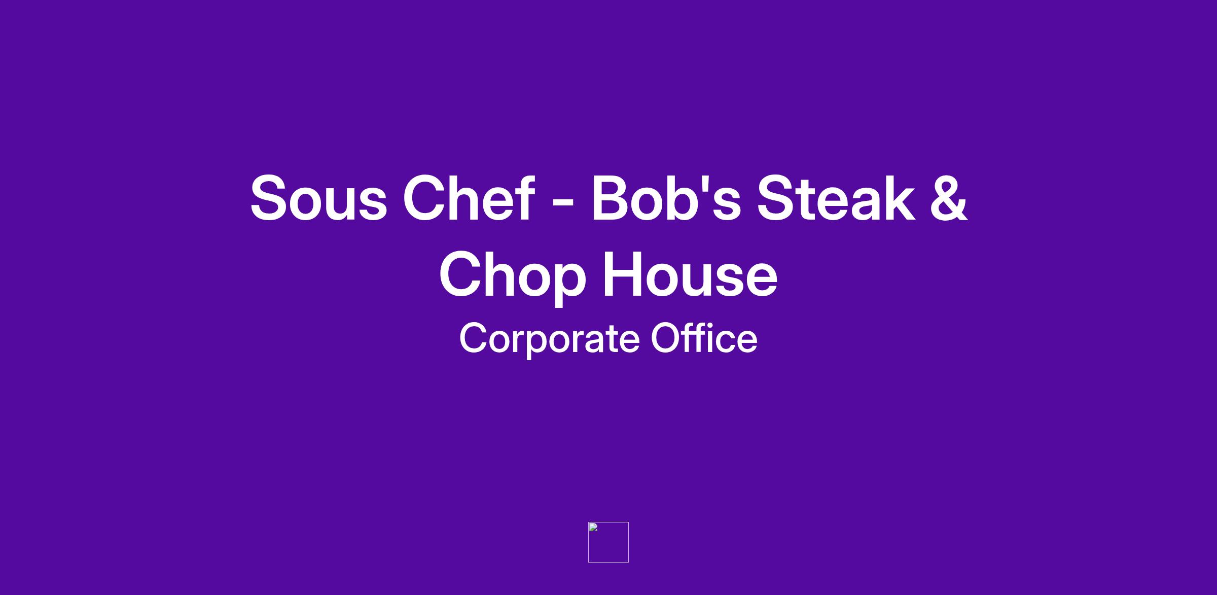 The Bob's Steak & Chop House Sous Chef is responsible for the efficient and effective running of the kitchen and food production outlets.