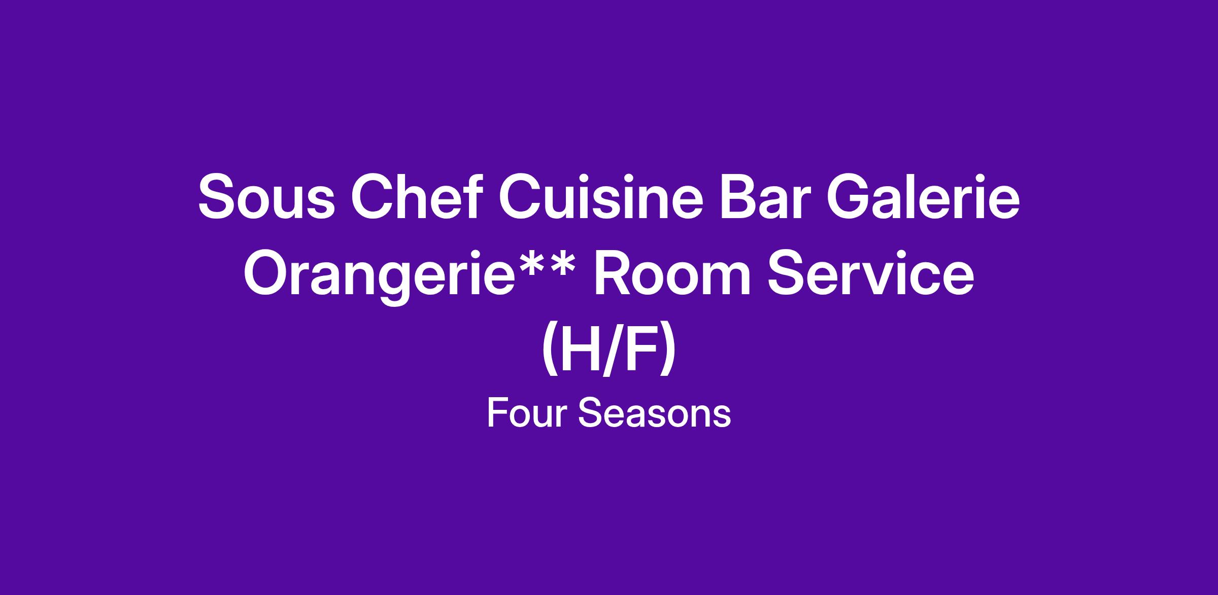 Nous recherchons pour notre établissement parisien un(e) Sous Chef Cuisine Bar Galerie Orangerie** Room Service (H/F) expérimenté et qualifié.