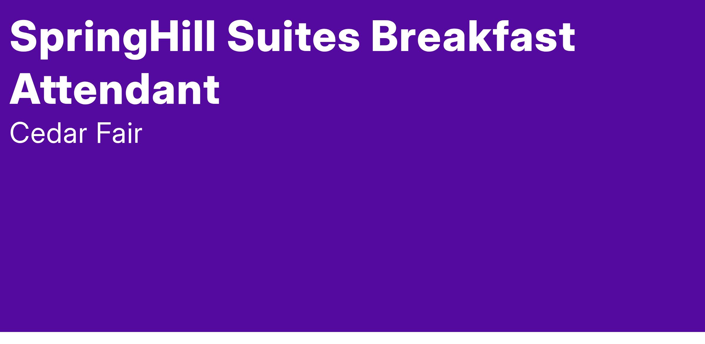 As a Breakfast Attendant at Springhill Suites by Marriott, you ensure the guest kick start their day with a healthy breakfast from our complimentary breakfast bar prepared and set up by you. You’ll ensure our guests feel at home and well cared for as you contribute to creating a memorable stay experience during their visit in the Carolinas! You'll also: