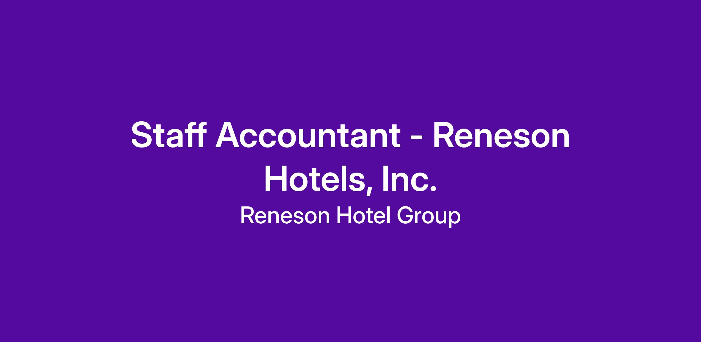 The Staff Accountant for Reneson Hotels, Inc. completes fixed asset depreciations, bank reconciliations, medical and dental benefit insurance reconciliations, as well as journal entries for all. The Staff Accountant also assists in partial invoice process and payments. The candidate will also perform some hotel and restaurant revenue transactions and reconciliations.