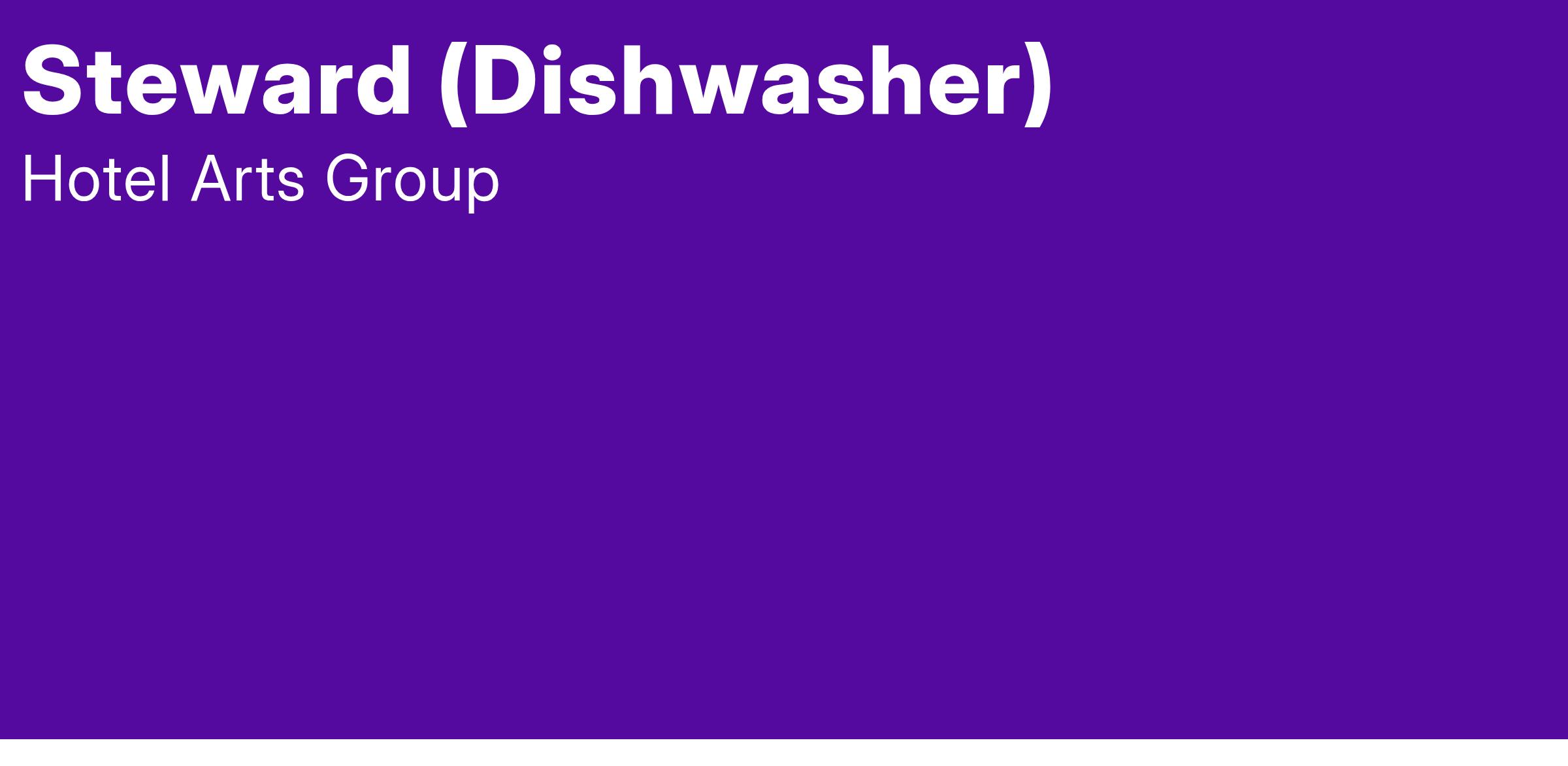 Hotel Arts Group is currently looking for a Steward (Dishwasher) to work in our busy Banquets Department. As a part of the Banquets team, you will be responsible for ensuring that adequate levels of china, silverware, and glassware are exceptionally clean and at appropriate stock levels. Your eye for detail, organization, and ability to work in a fast paced environment will ensure your success!