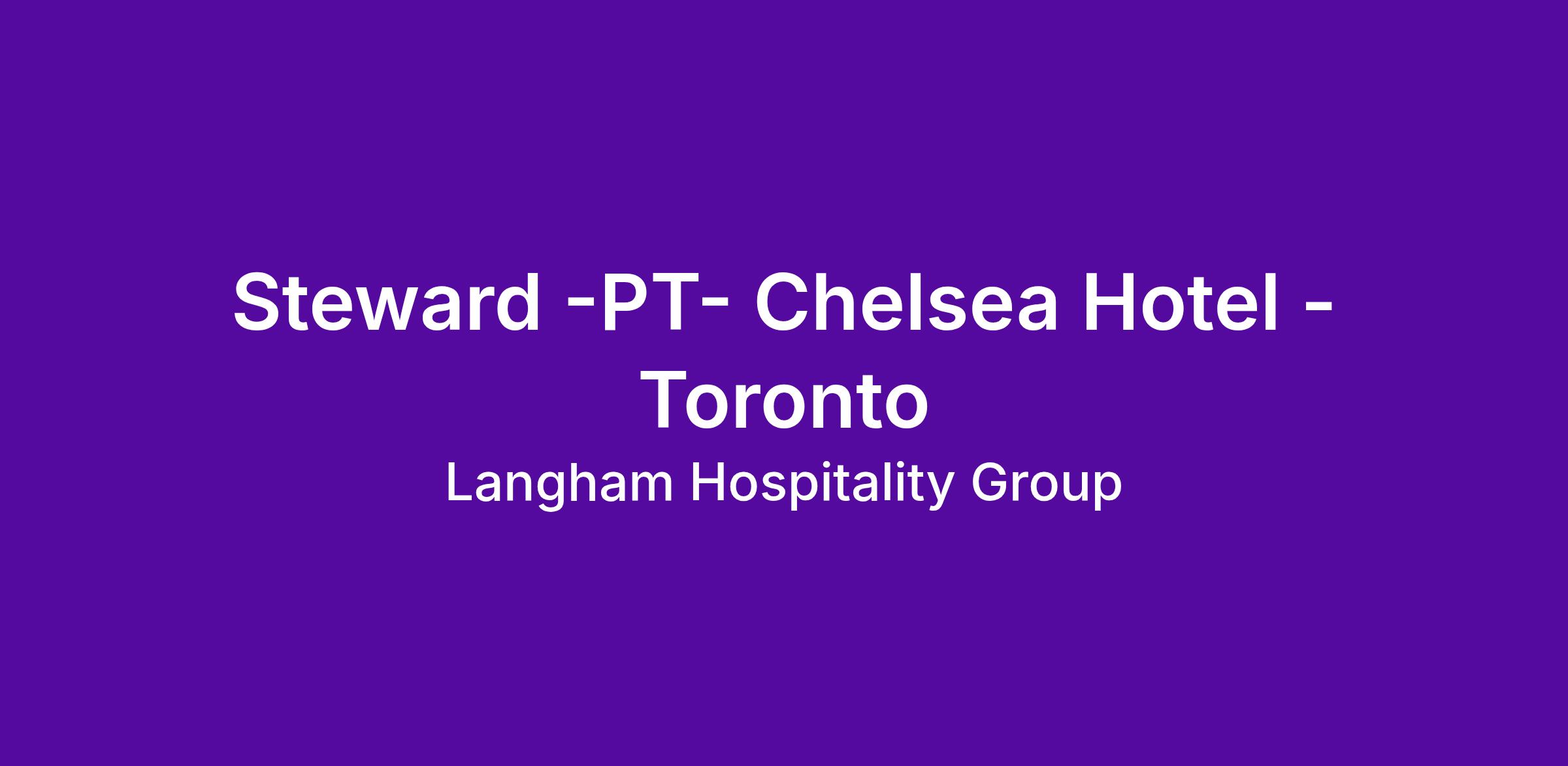 The Chelsea Hotel, Toronto is committed to providing a fair and equitable work environment and encourages applications from qualified women, men, visible minorities, aboriginal peoples and persons with disabilities. As per the Ontario Human Rights Code and the Accessibility for Ontarians with Disabilities Act (AODA), Chelsea Hotel, Toronto will accommodate the needs of applicants with disabilities throughout all stages of the selection process. If you need accommodation during the recruitment process, please advise your Talent Acquisition representative.