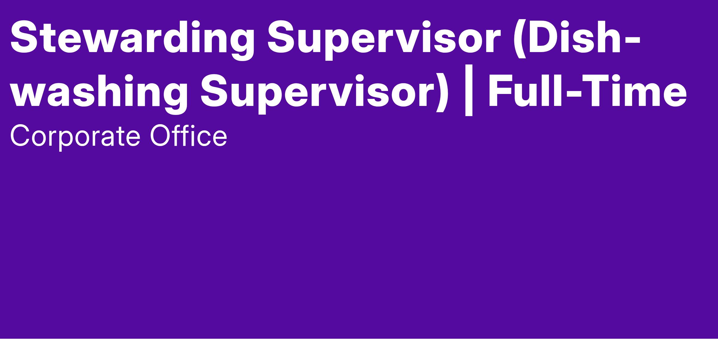 The Stewarding Supervisor role is to supervise the day-to-day operation of the department for a given shift. The Stewarding Supervisor is responsible for the control and distribution of operating equipment, maintenance of cleaning and sanitation standards, supervision of all utility, pot washer, dishwasher, and worker assignment tasks.