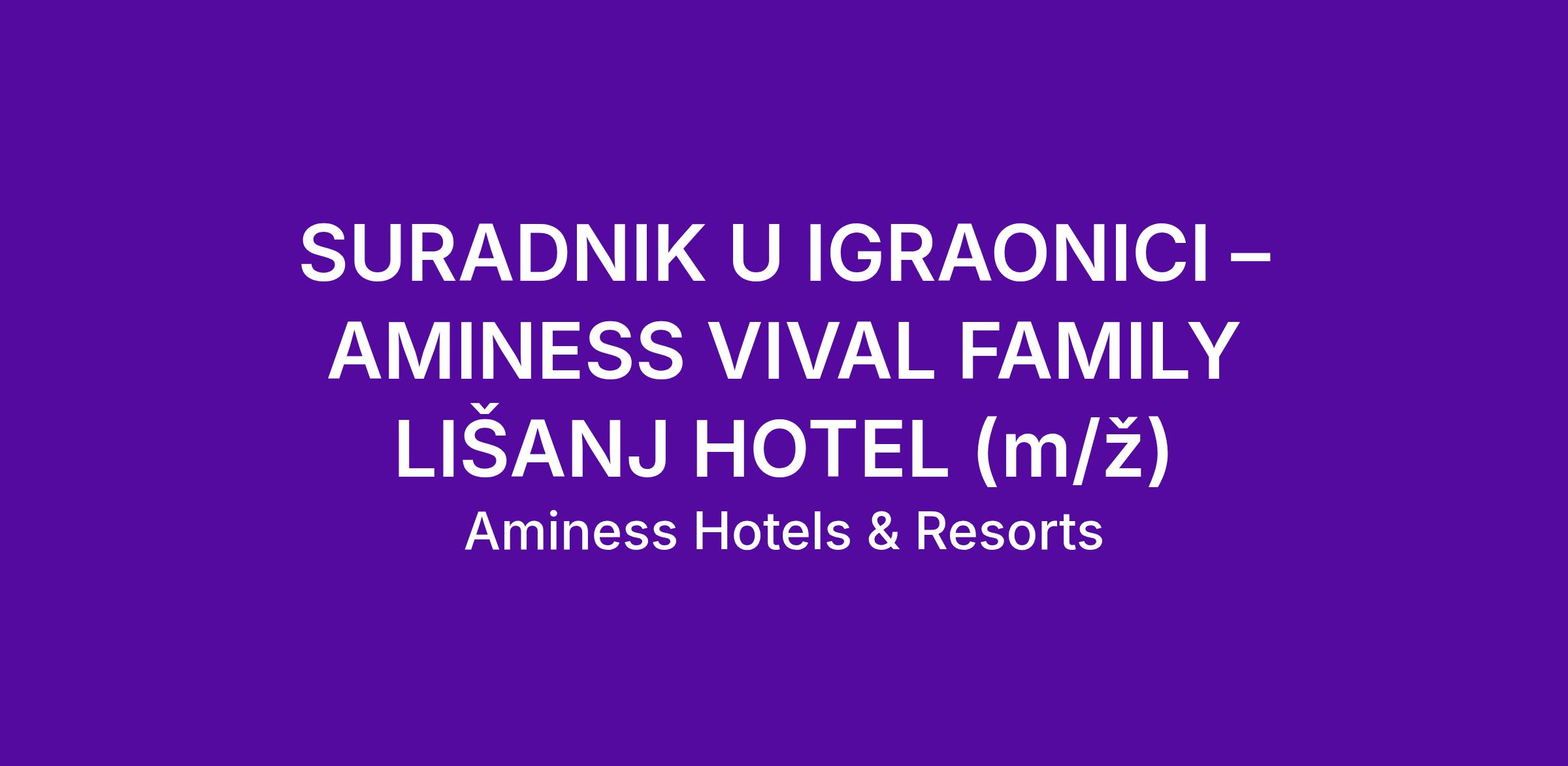 Aminess Hotels & Resorts, najbrže rastuća turistička kompanija u Hrvatskoj, s portfeljem od 31 objekta u 11 destinacija, nudi vam savršenu priliku da nam se pridružite i izgradite trajne poslovne odnose.