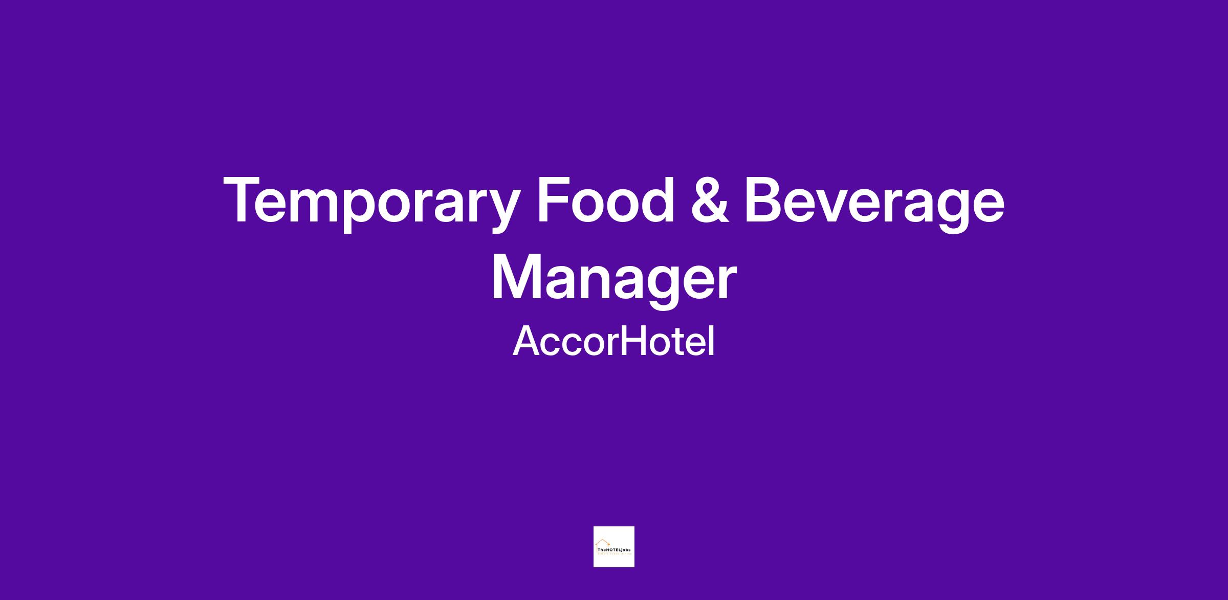 Food & Beverage Manager - Fairmont Sonoma Mission Inn & Spa (Hotel) Passionate about guest interaction, teamwork and food and beverage? As Food & Beverage Manager, you will support an engaged team and inspire the Restaurant Teams to create unforgettable dining experiences for our guests.