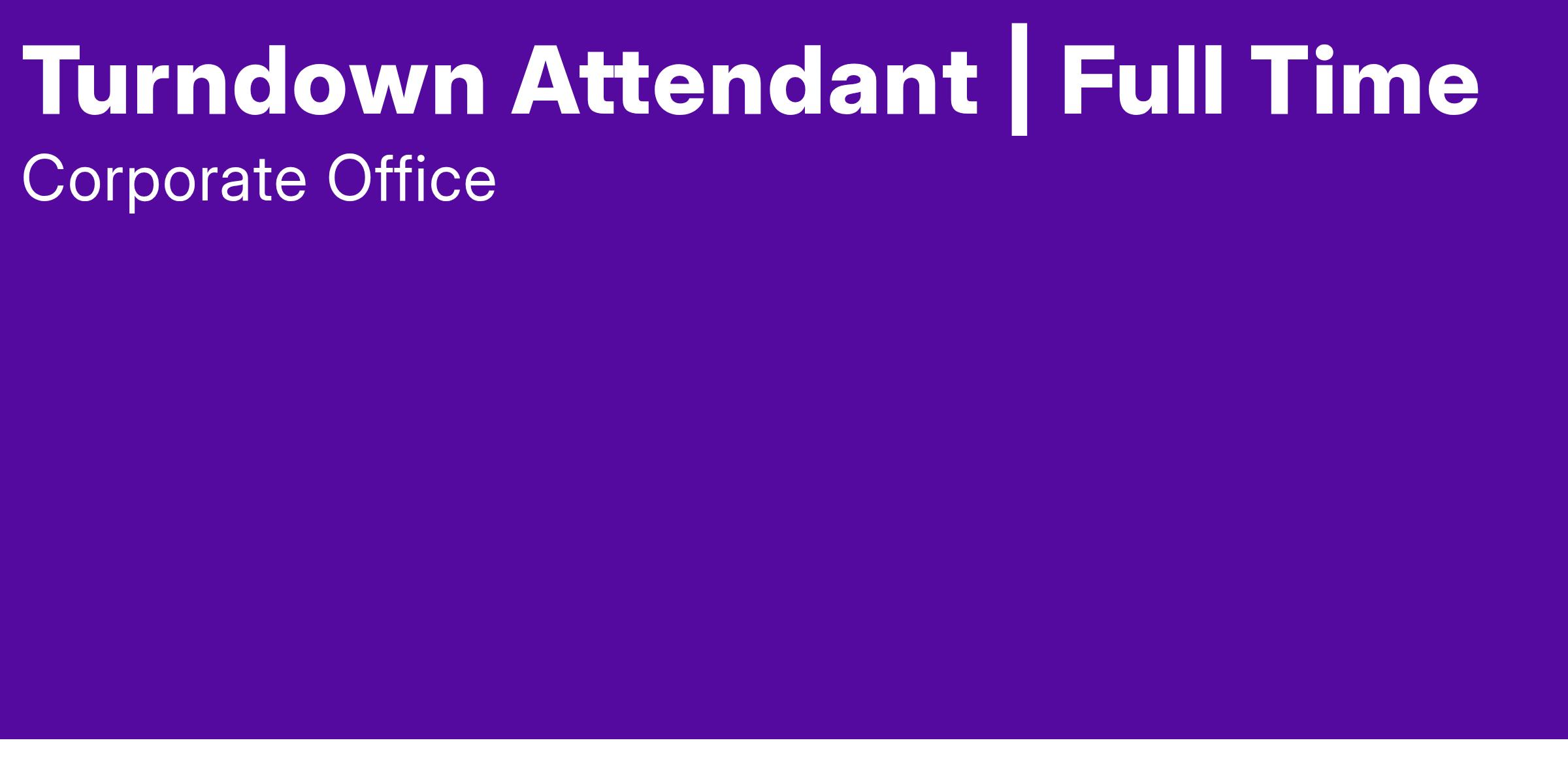 The Housekeeping Turndown Attendant is responsible for making lasting impressions on our guests by ensuring the guest’s room is clean, attractive and welcoming at all times. Our Turndown Attendants provide extra touches to our guest’s rooms suitable for our guests: they will offer ice and other amenities such as extra towels and pillows, turn-down the bed, freshen-up/clean the room, turn on the television and music to a soothing and relaxing channel, draw the curtains close and more.