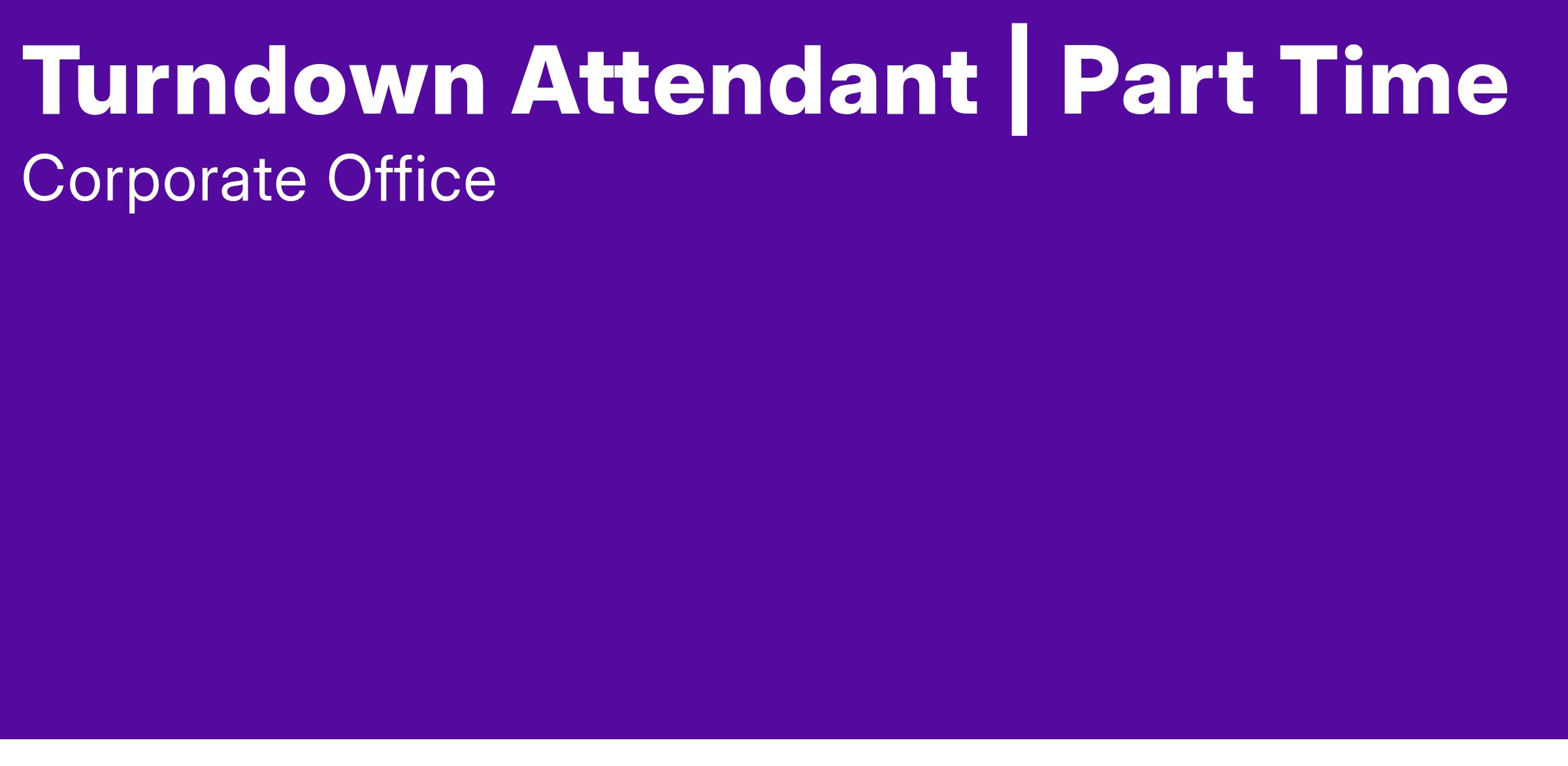 The Housekeeping Turndown Attendant is responsible for making lasting impressions on our guests by ensuring the guest’s room is clean, attractive and welcoming at all times. Our Turndown Attendants provide extra touches to our guest’s rooms suitable for our guests: they will offer ice and other amenities such as extra towels and pillows, turn-down the bed, freshen-up/clean the room, turn on the television and music to a soothing and relaxing channel, draw the curtains close and more.