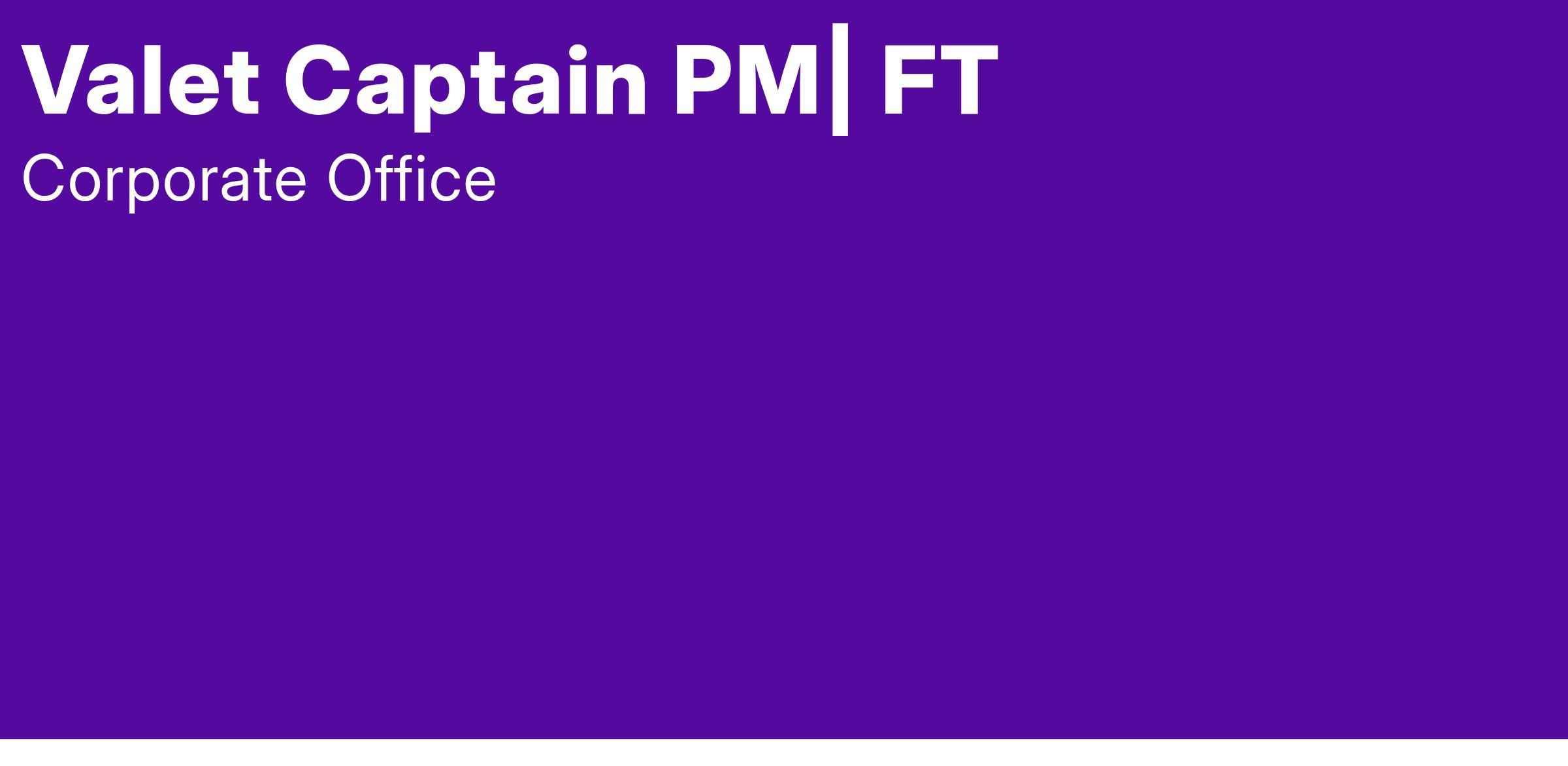 The Valet Captain Represents the hotel at the main entrance by greeting guests in an enthusiastic and courteous manner. Maintains driveway traffic flow to allow main hotel entrance accessibility as well as to ensure ample space for passenger and luggage loading and unloading and offers luggage assistance to all guests.