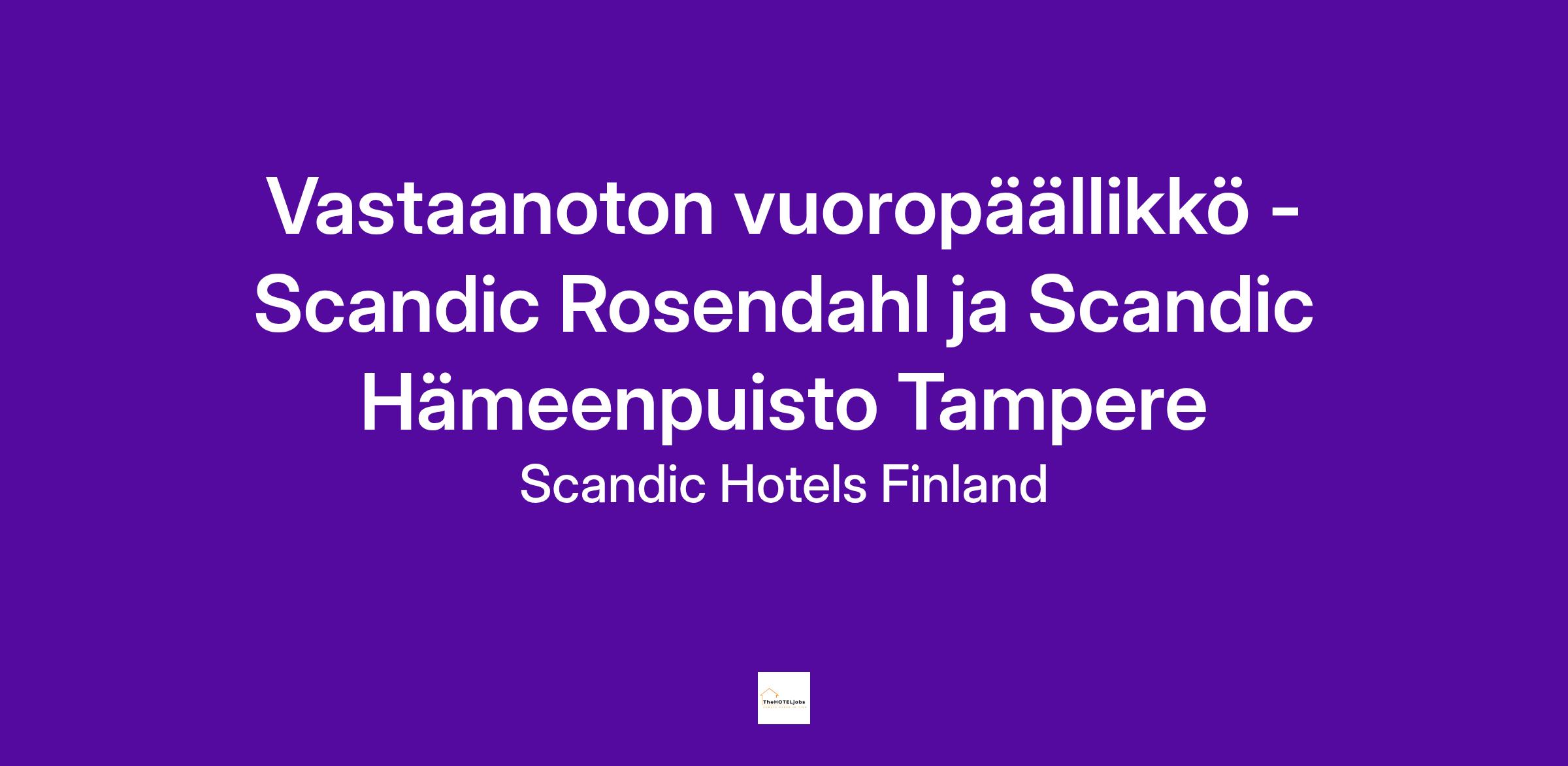 Haemme vastaanoton vuoropäällikköä Scandic Rosendahlin ja Scandic Hämeenpuiston jaettuun tiimiin, täysipäiväiseen (112,5h/3vko) ja määräaikaiseen sopimukseen. Määräajan kesto on arvioitu 1.1.2026-31.12.2027.