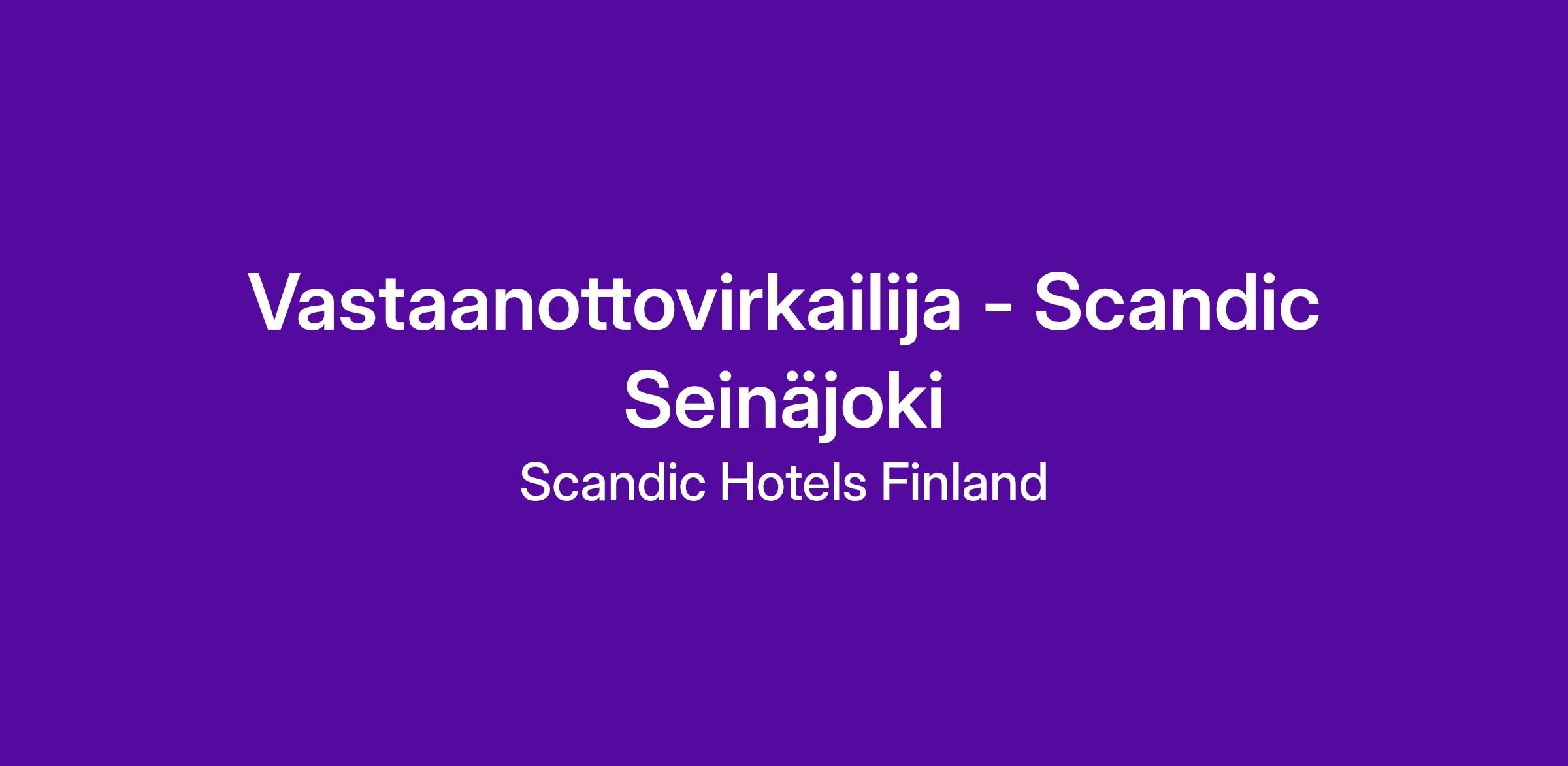 Haemme vastaanottovirkailijaa Scandic Seinäjoelle osa-aikaiseen työsuhteeseen. Tarjoamme 30h/3vko sopimuksen.