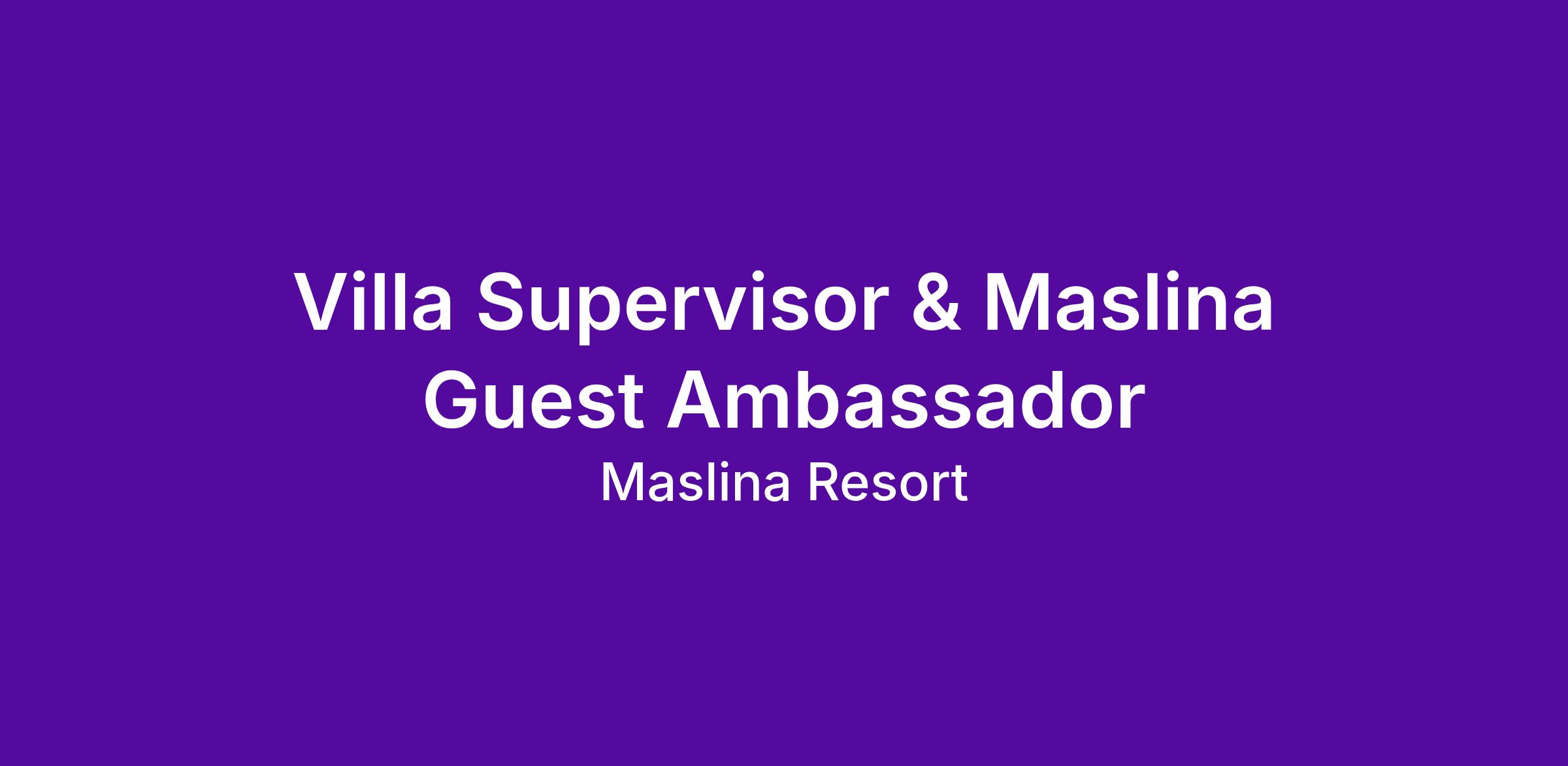 We are seeking a Villa Supervisor & Maslina Guest Ambassador—a vital role that ensures our most exclusive accommodations operate at the highest standard.