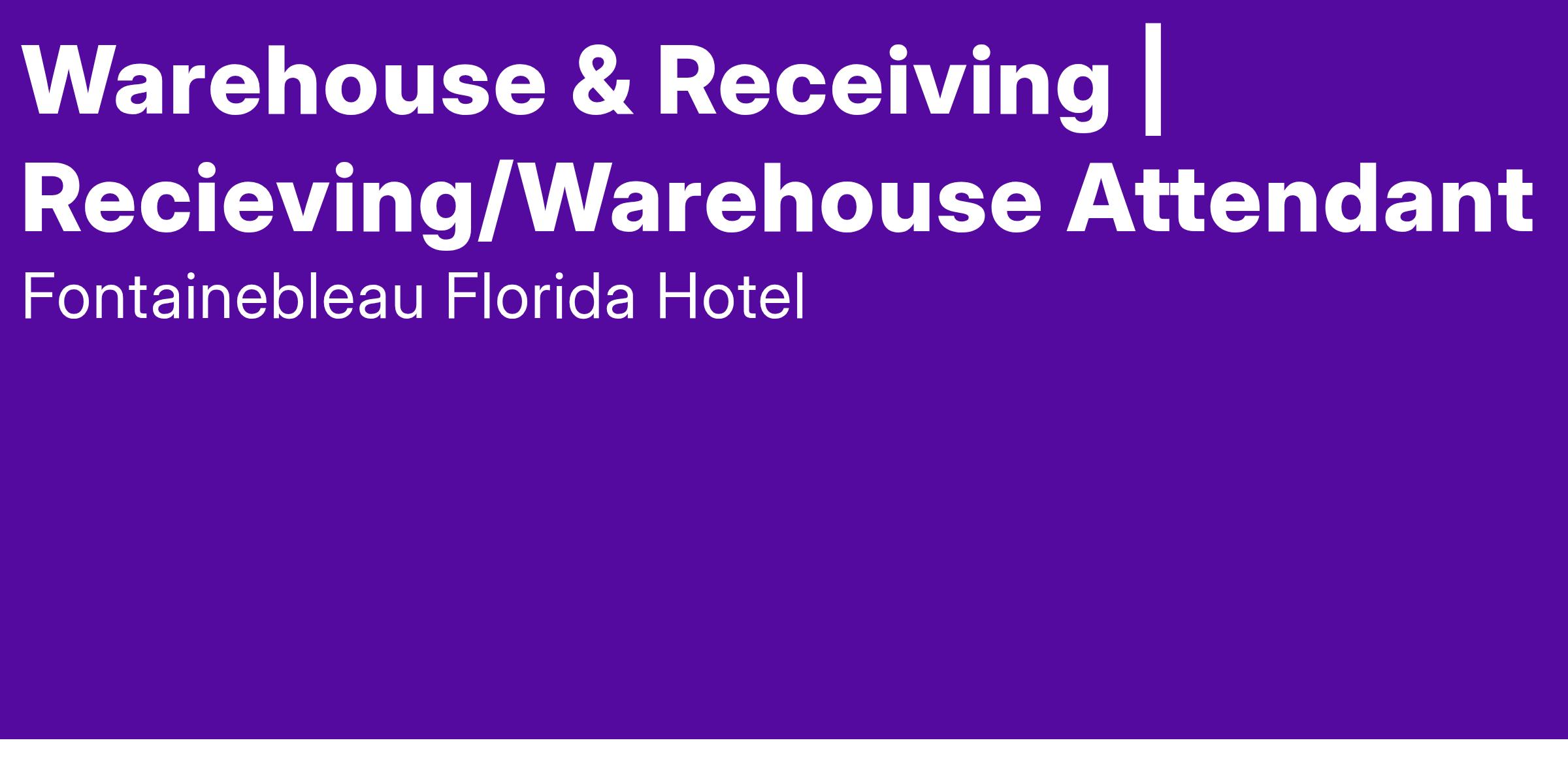 The Warehouse Attendant will be responsible for the daily operations of maintaining the Food and Beverage Warehouse, including proper sanitation standards. Stocking/organizing shelves with incoming material/merchandise and Food and Beverage into the warehouse and rotating food and beverage products to avoid spoilage. Gathering and checking stocked items requested by departments. Conducting inventory on a daily/weekly/monthly basis. Assisting the Warehouse Supervisor and Warehouse Manager in any additional task.