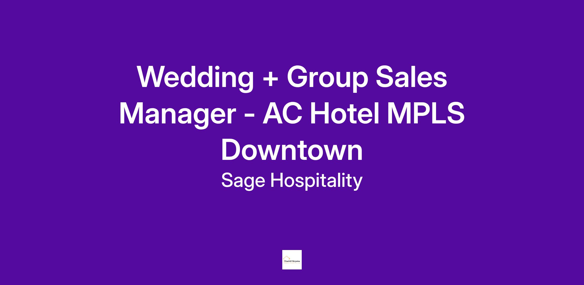 Sage Hotel Management, a Sage Hospitality Group company, is currently seeking a passionate, enthusiastic and purpose driven Wedding + Group Sales Manager to deliver artful hospitality at the AC Hotel MPLS Downtown.